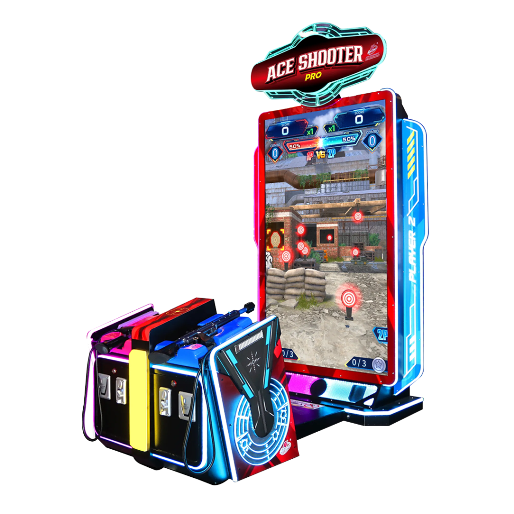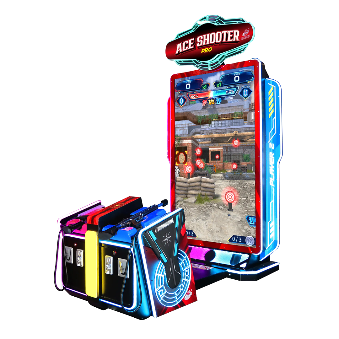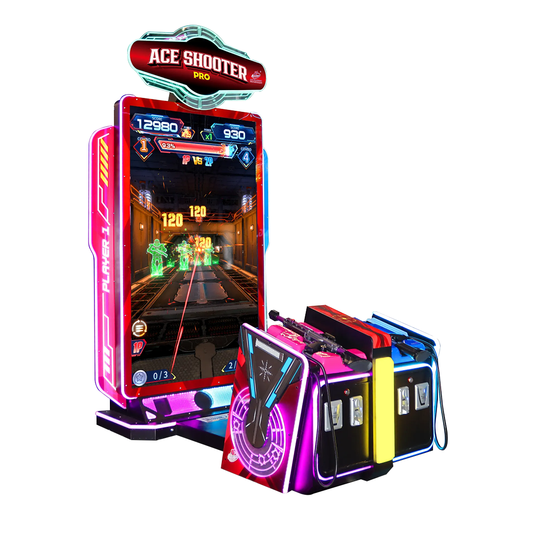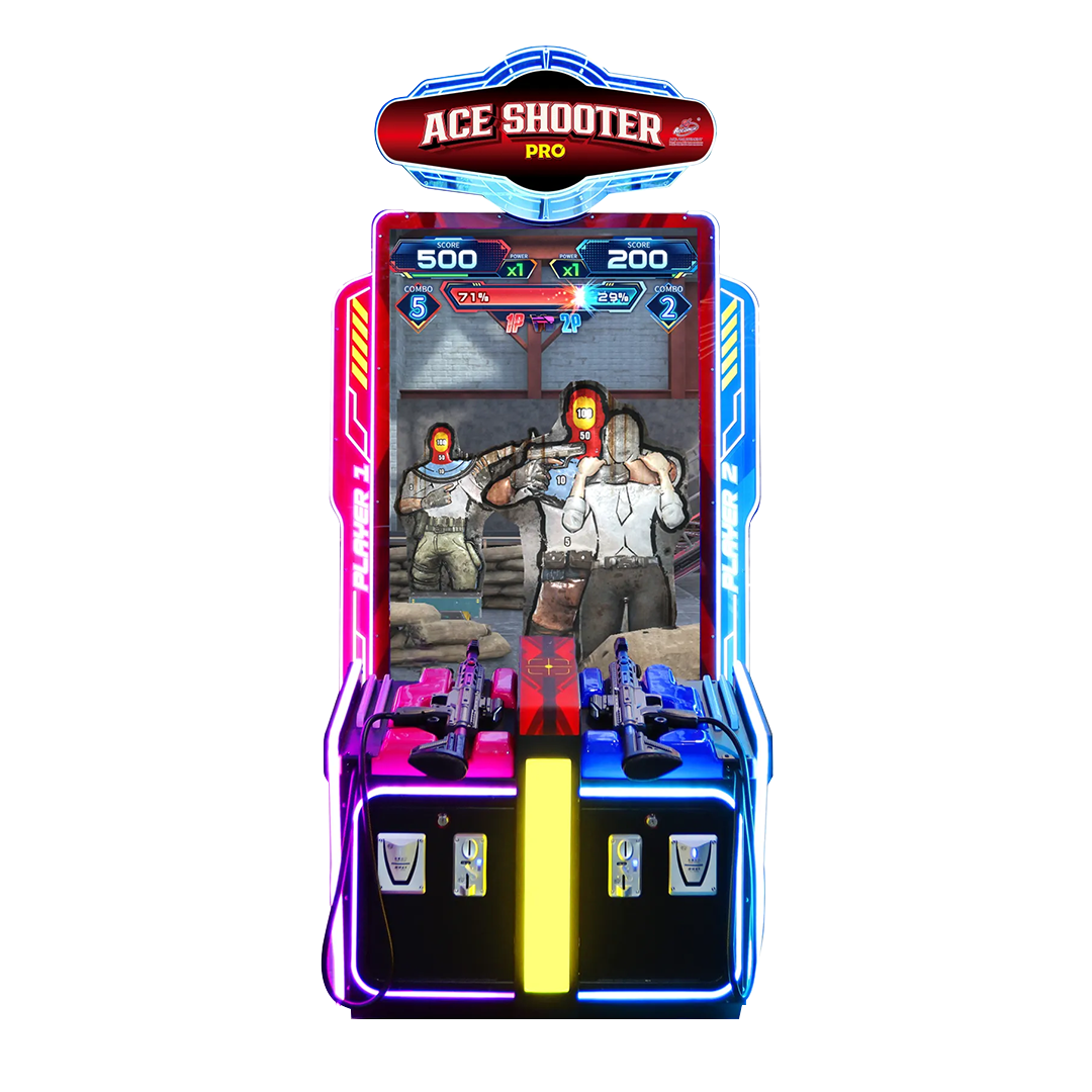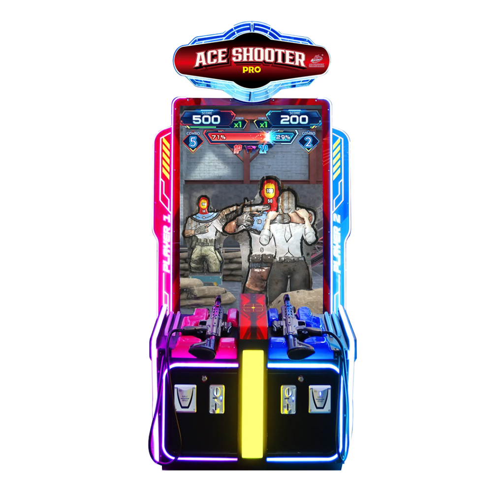 ACE Shooter Pro est une borne de tir, pensée pour offrir une expérience de jeu intense et immersive. Son univers de science-fiction, associé à un design futuriste et à un éclairage spectaculaire, attire immédiatement le regard dans toute salle d’arcade ou centre de loisirs.
