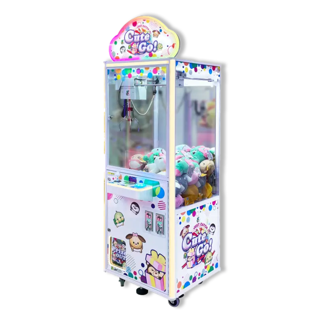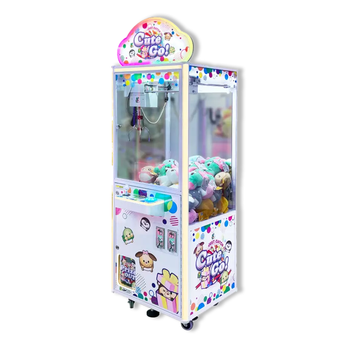 Cute Go ! est une machine à pince d’arcade qui séduit par son design adorable et moderne, pensé pour attirer enfants et adultes. Ses lumières LED multicolores lui permettent de s’intégrer harmonieusement dans tous types d’environnements : salles d’arcade, centres de loisirs ou espaces de divertissement.