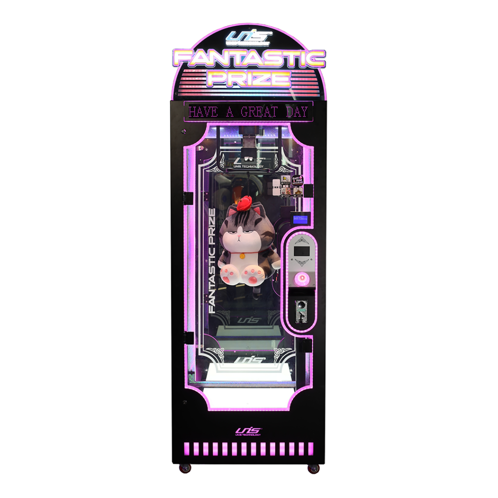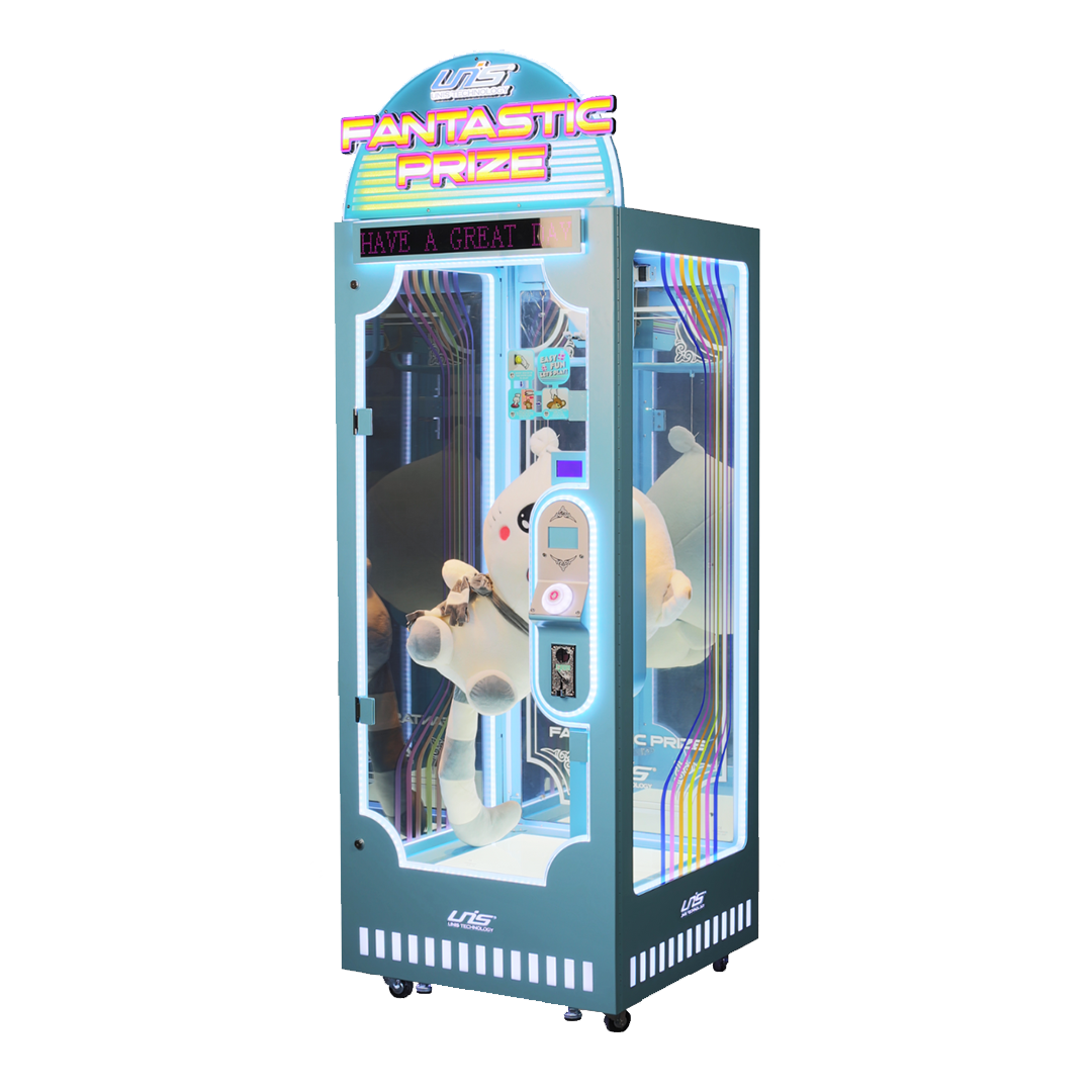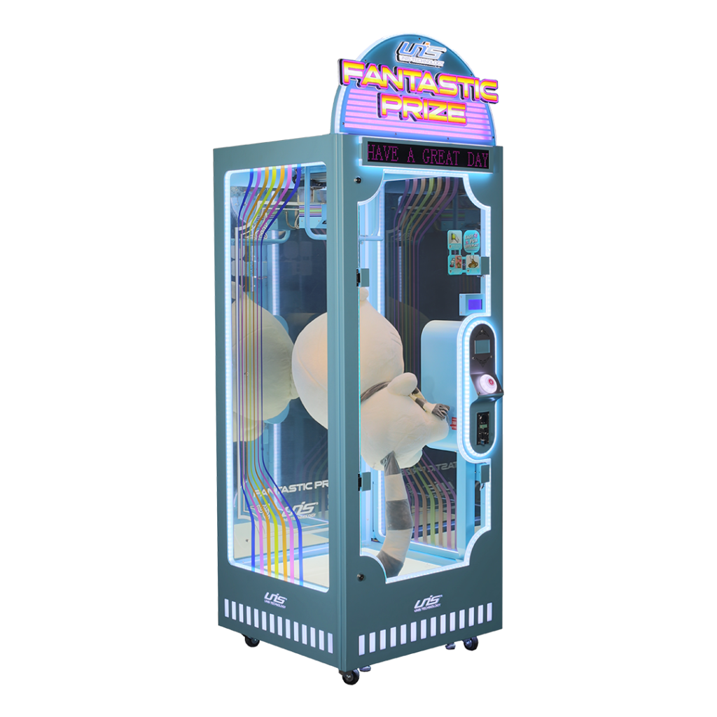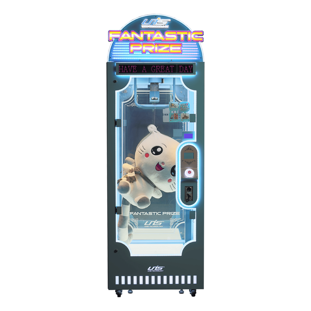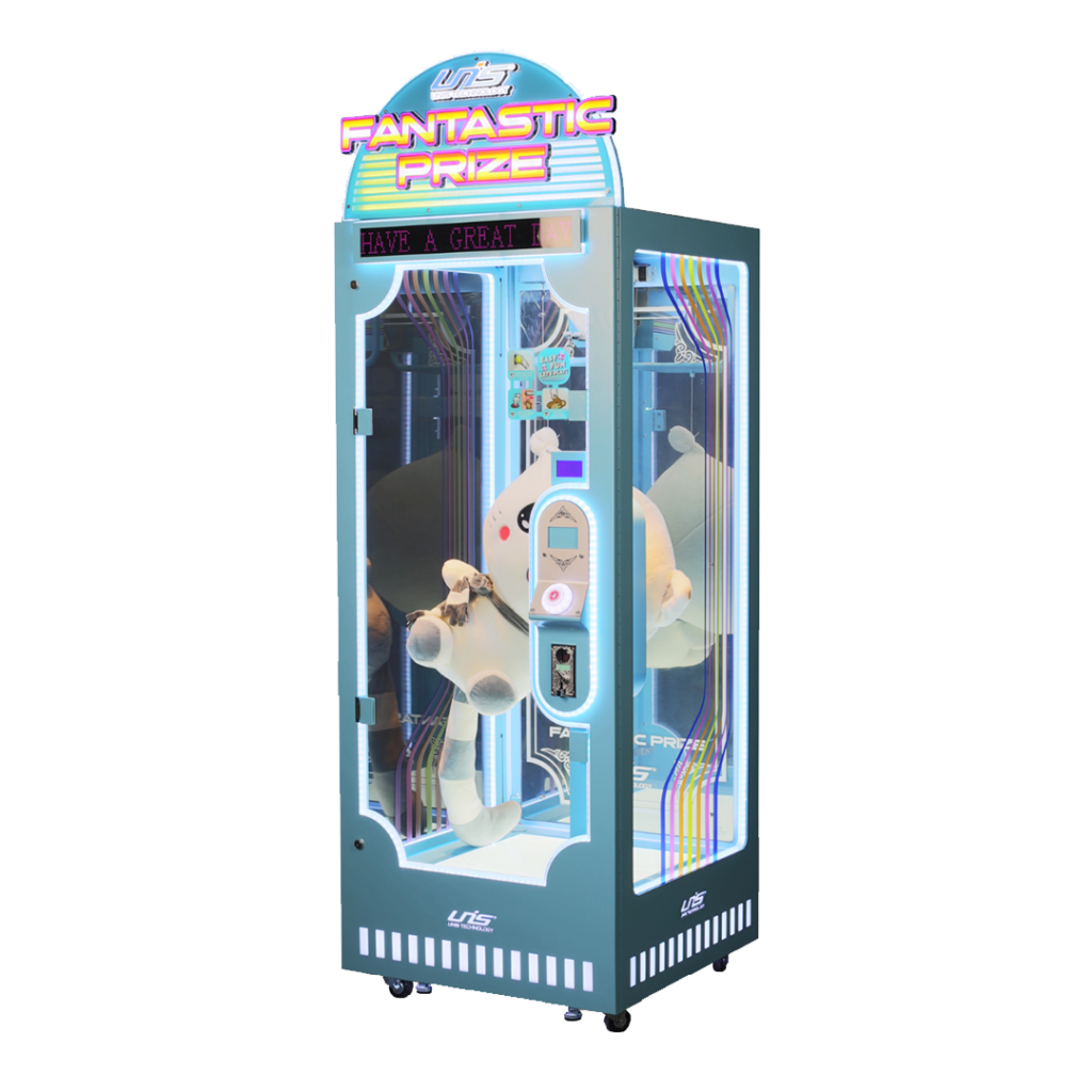 Ce jeu aux couleurs dynamiques s’intègrera parfaitement dans n’importe quelle salle d’arcade et captera immédiatement l’attention des joueurs, enfants comme adultes. Fantastic Prize est conçu pour accueillir des peluches de grandes tailles.