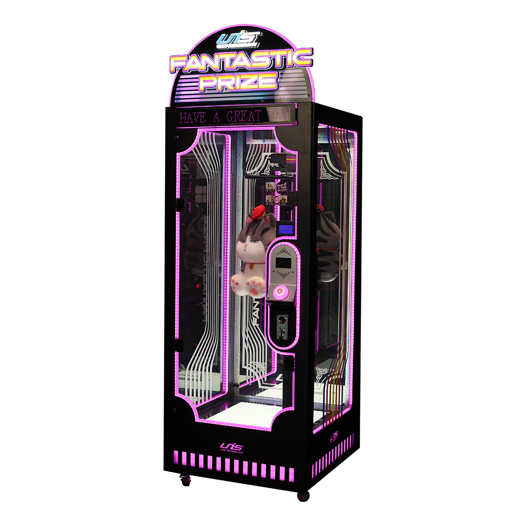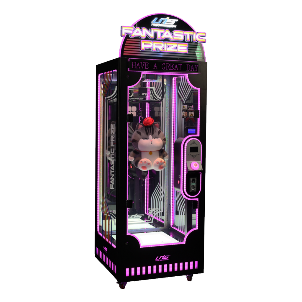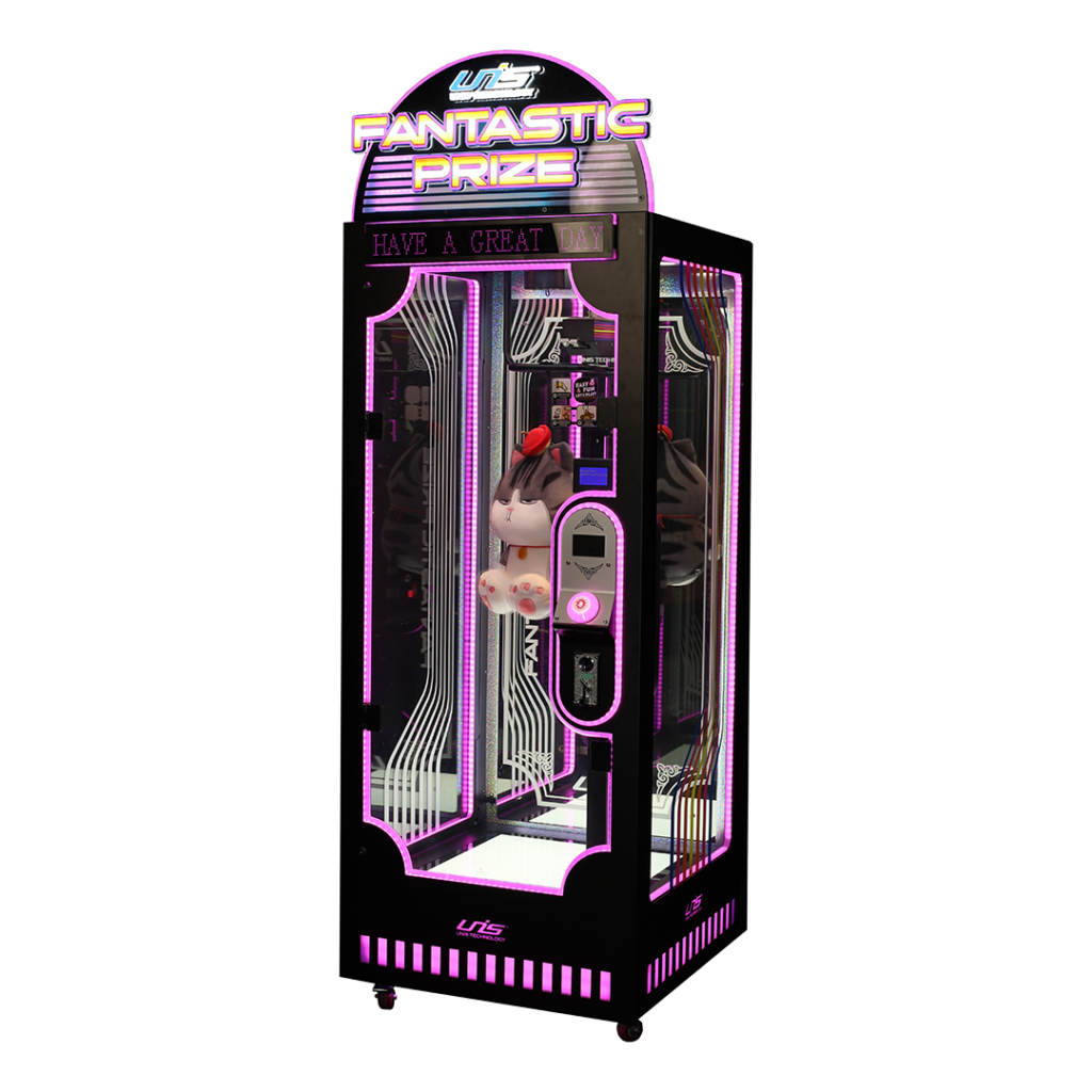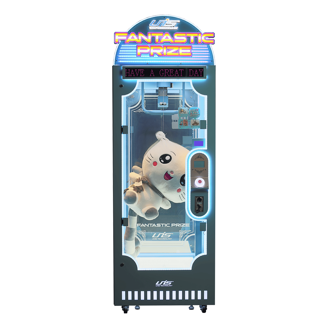Ce jeu aux couleurs dynamiques s’intègrera parfaitement dans n’importe quelle salle d’arcade et captera immédiatement l’attention des joueurs, enfants comme adultes. Fantastic Prize est conçu pour accueillir des peluches de grandes tailles.