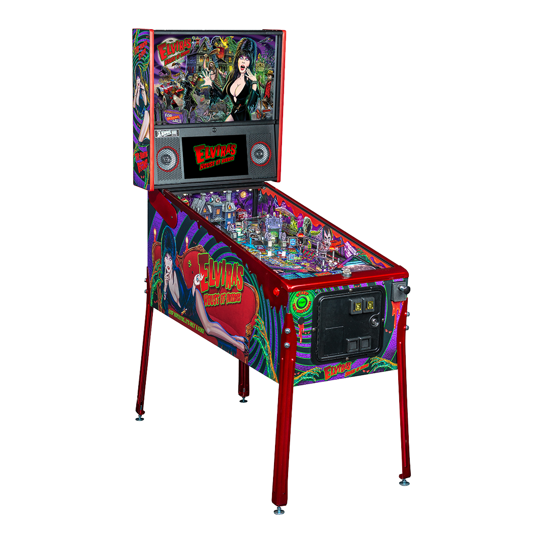 La provocation laisse place à l’horreur dans Elvira’s House of Horrors, le troisième et plus délirant volet de la trilogie de flippers Elvira signée Stern Pinball. Alors qu’Elvira tente de vendre son manoir, celui-ci se retrouve envahi par des fantômes, monstres et personnages cultes de films de série B venus se venger. Le jeu plonge les joueurs dans un univers campy et horrifique, rempli de l’humour légendaire de la Mistress of the Dark, avec dialogues personnalisés et, pour la première fois dans un flipper, des scènes vidéo exclusives tournées spécialement avec Elvira.