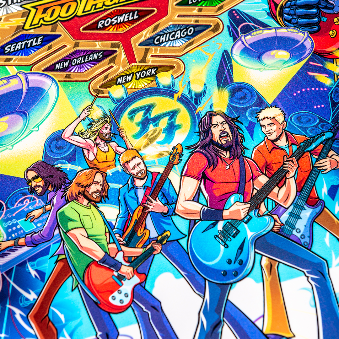 Disponible en versions Pro, Premium et Limited Edition, le flipper Foo Fighters se distingue par un plateau de jeu dynamique et fluide, sublimé par des illustrations dessinées à la main, des animations exclusives inspirées d’une série fictive intitulée Foo Fighters Saturday Morning Action Time! et une intégration musicale exceptionnelle. Pas moins de 15 titres emblématiques du groupe accompagnent l’action, dont Everlong, Learn to Fly, My Hero, Best of You ou encore The Pretender, recréant l’intensité d’un véritable concert.