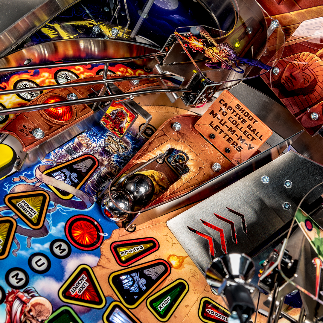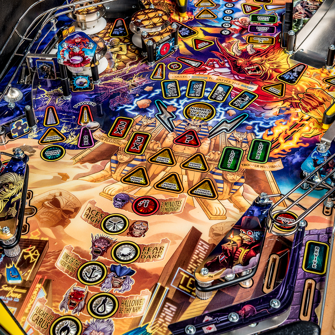 Les joueurs incarnent Eddie, la mascotte mythique d’Iron Maiden, sous différentes formes, et se lancent dans une quête épique pour vaincre la Bête et ses sbires, inspirée de l’univers Legacy of the Beast. Accessible à tous les niveaux, le gameplay mêle habilement mécaniques modernes et classiques pour offrir une expérience riche, dynamique et spectaculaire. Tous les modèles intègrent 12 titres emblématiques d’Iron Maiden, ainsi qu’un plateau complet avec quatre flippers, deux spinners, trois rangées de cibles tombantes, des rampes métal et fil de fer, une bille captive, un système de verrouillage à double poteau et une cible centrale, garantissant un jeu intense et immersif à chaque partie.