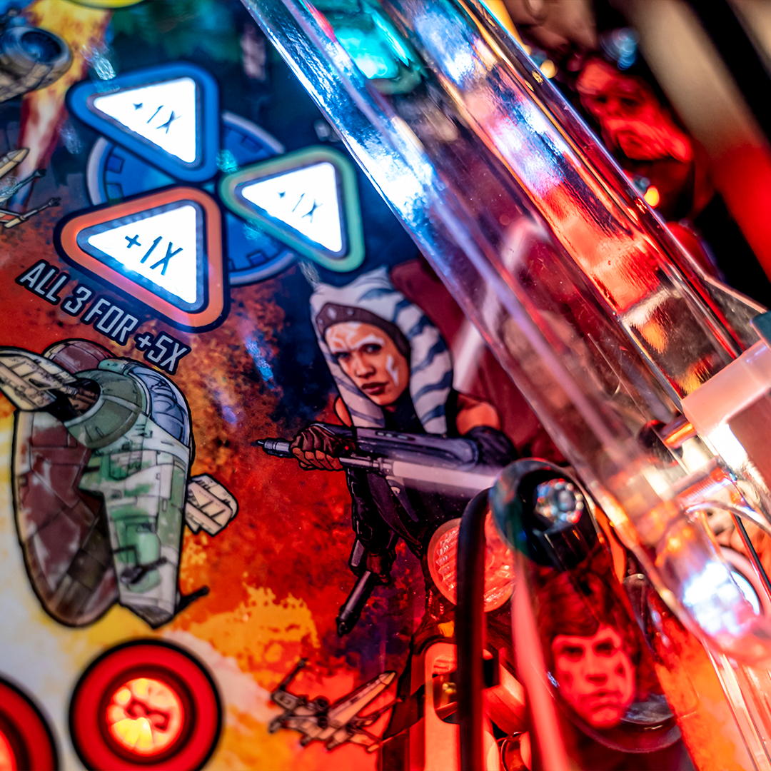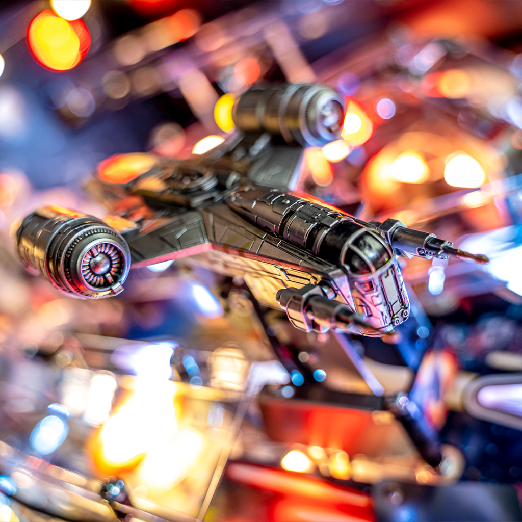 L’expérience de jeu se distingue par des mécaniques spectaculaires, dont le mini-plateau supérieur rotatif Encounter à gravité variable (Premium et Édition Limitée), équipé de flippers et de cibles pour des combats épiques. Les joueurs devront également faire face à des embuscades dynamiques, grâce à un système de tirs rapides et répétables via une rampe motorisée en fer à cheval. Le chaos multibilles s’active en visant une cible suspendue reliée au vaisseau Razor Crest, offrant des séquences de jeu intenses sur tous les modèles.