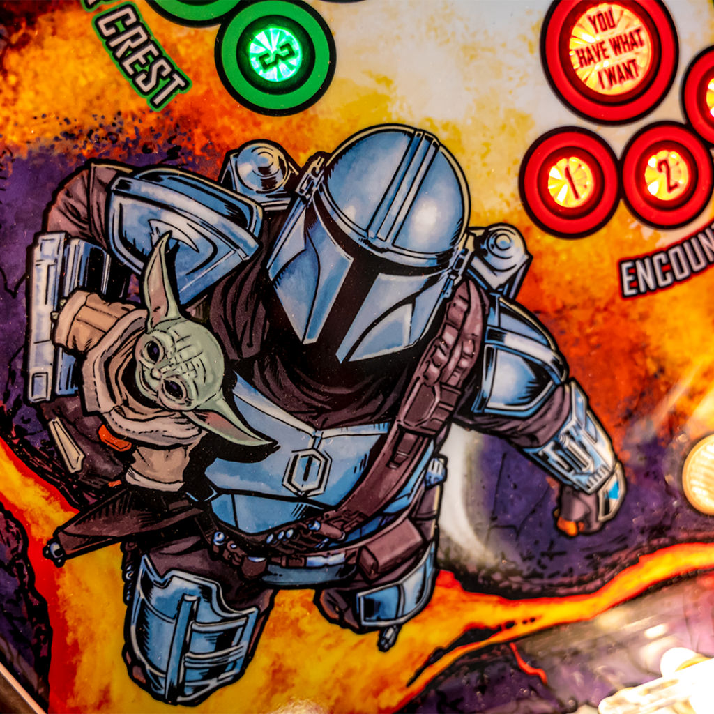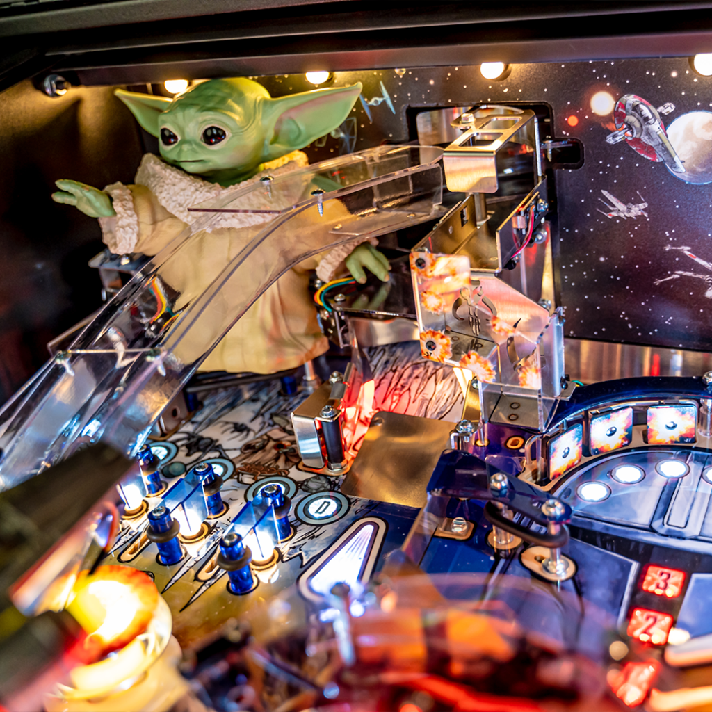 Le flipper intègre une grande sculpture personnalisée de Grogu, des extraits vidéo et audio authentiques des saisons 1 et 2, des dialogues exclusifs interprétés par Carl Weathers (Greef Karga) et le thème musical emblématique de Ludwig Göransson. Le tout est sublimé par de superbes illustrations dessinées à la main par Randy Martinez, renforçant l’immersion dans l’univers Star Wars.