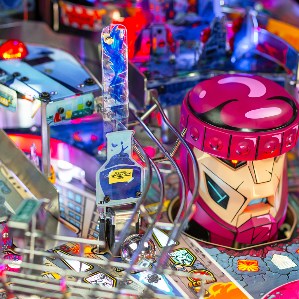 Plongez dans l’univers des X-Men avec The Uncanny X-Men de Stern Pinball, mettant en scène Wolverine, Professor X, Cyclops, Storm, Colossus, Beast, Rogue, Gambit, Nightcrawler, Jean Grey, Bishop, Kitty Pryde et Magneto, ainsi que leurs alliés et ennemis emblématiques. Les joueurs explorent des lieux mythiques comme la Danger Room, le Beast’s Lab, le X-Mansion et Genosha, tout en interagissant avec des dispositifs légendaires comme Cerebro et le X-Jet. Le plateau propose des trajectoires de balle surprenantes, des rampes innovantes et des zones à haut risque, comme la Danger Room avec mini-flipper et spinner, tandis que les modèles Premium et Édition Limitée incluent un Beast’s Lab captive ball surélevé et un Sentinel articulé qui attaque le joueur et ses rampes pour un défi dynamique.