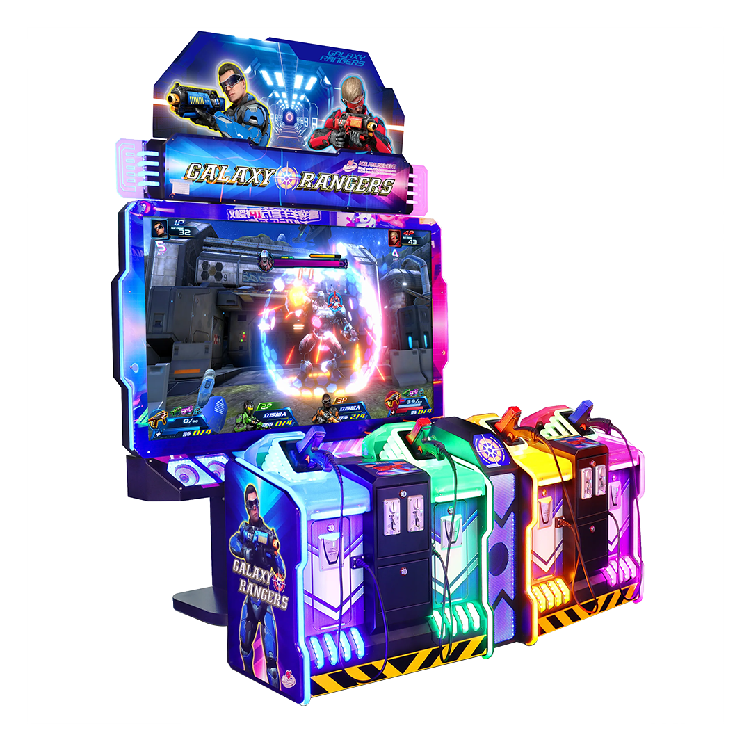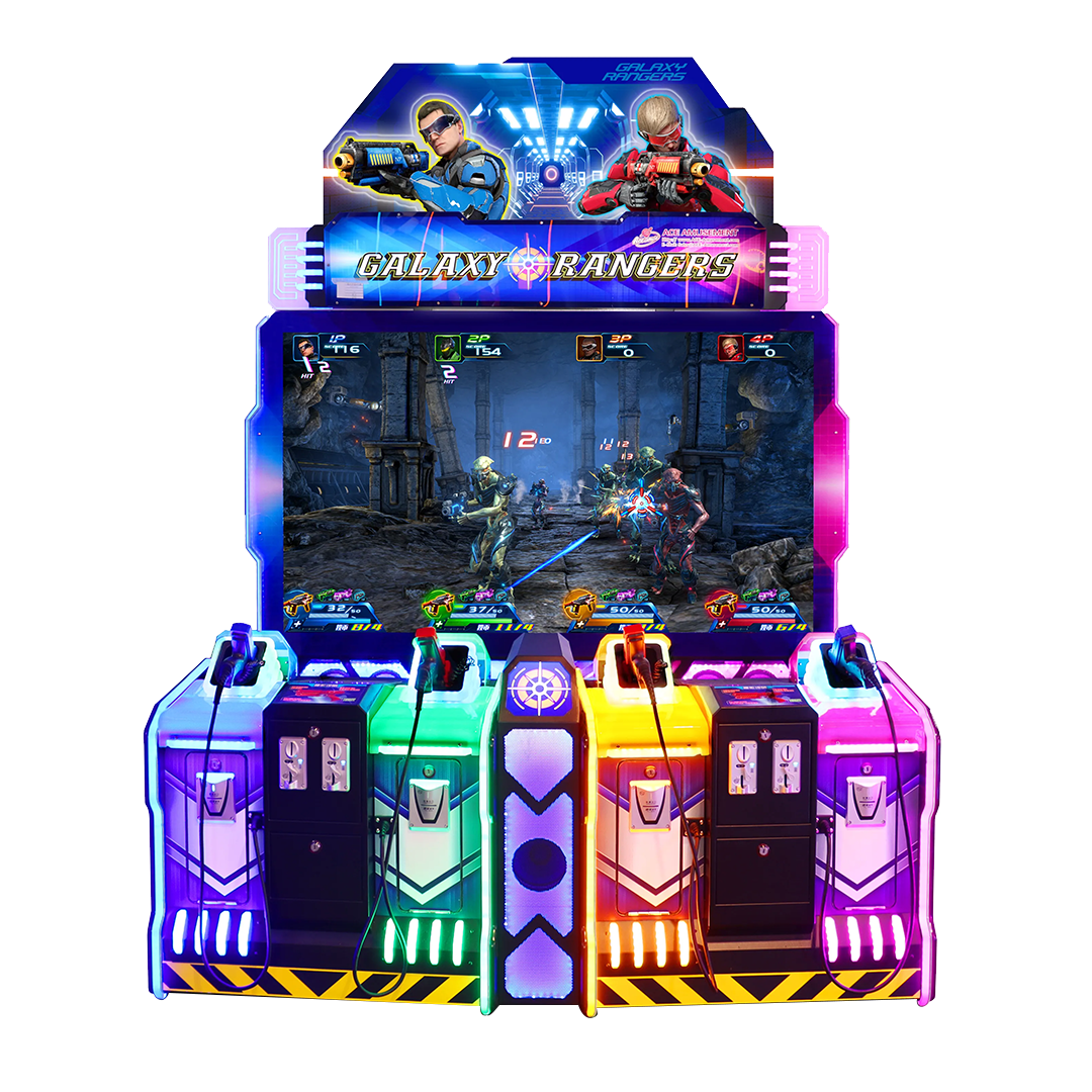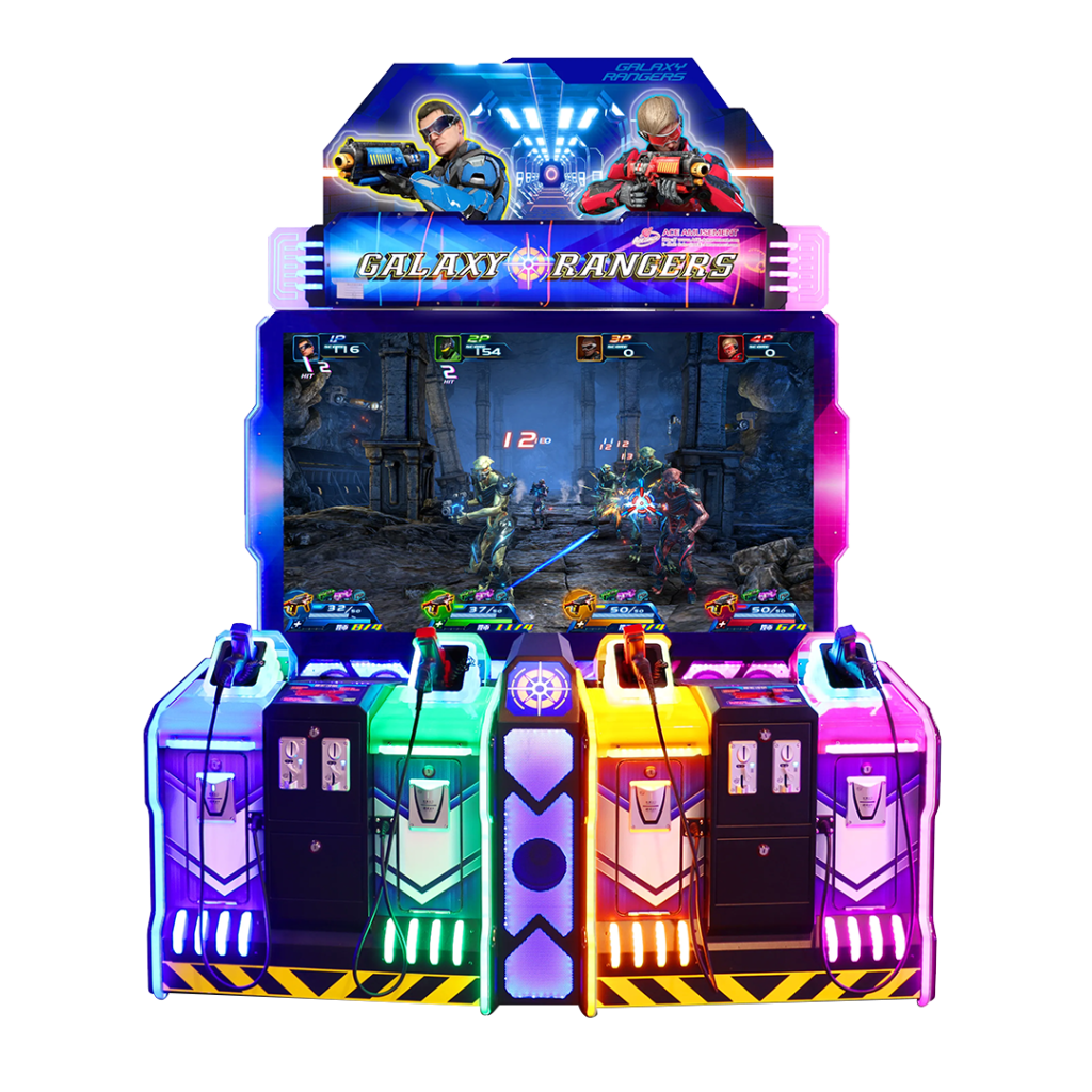 Ce jeu de tir pour 4 joueurs propose 8 scénarios palpitants et trois niveaux de difficultés. Chaque niveau offre des décors, ennemis et boss différents pour un plaisir et un défi sans fin. Avec ses effets lumineux impressionnants et son design colorés, Galaxy Rangers est une borne idéale pour les salles de jeux et centres de loisirs familiaux.