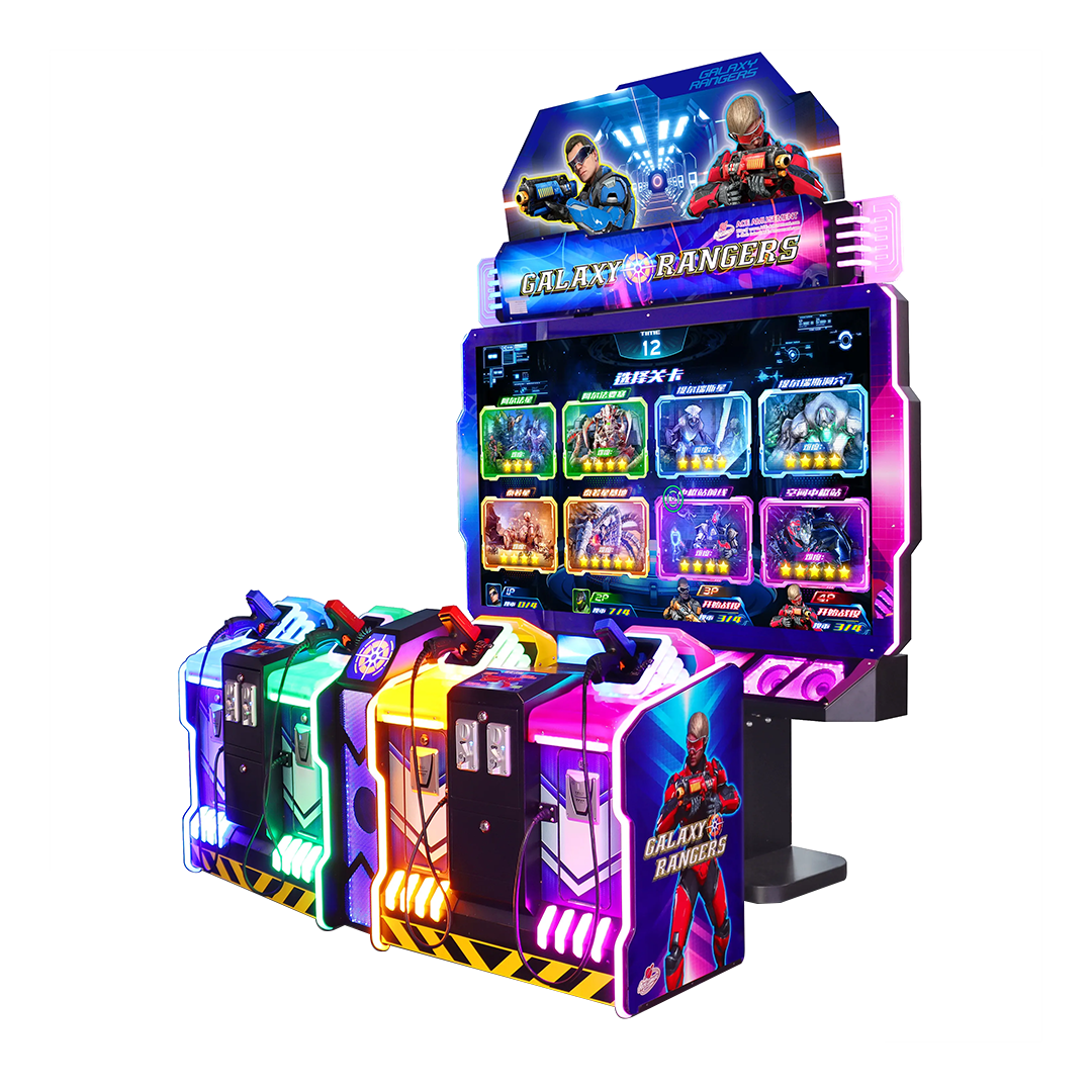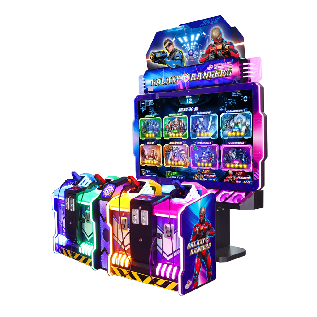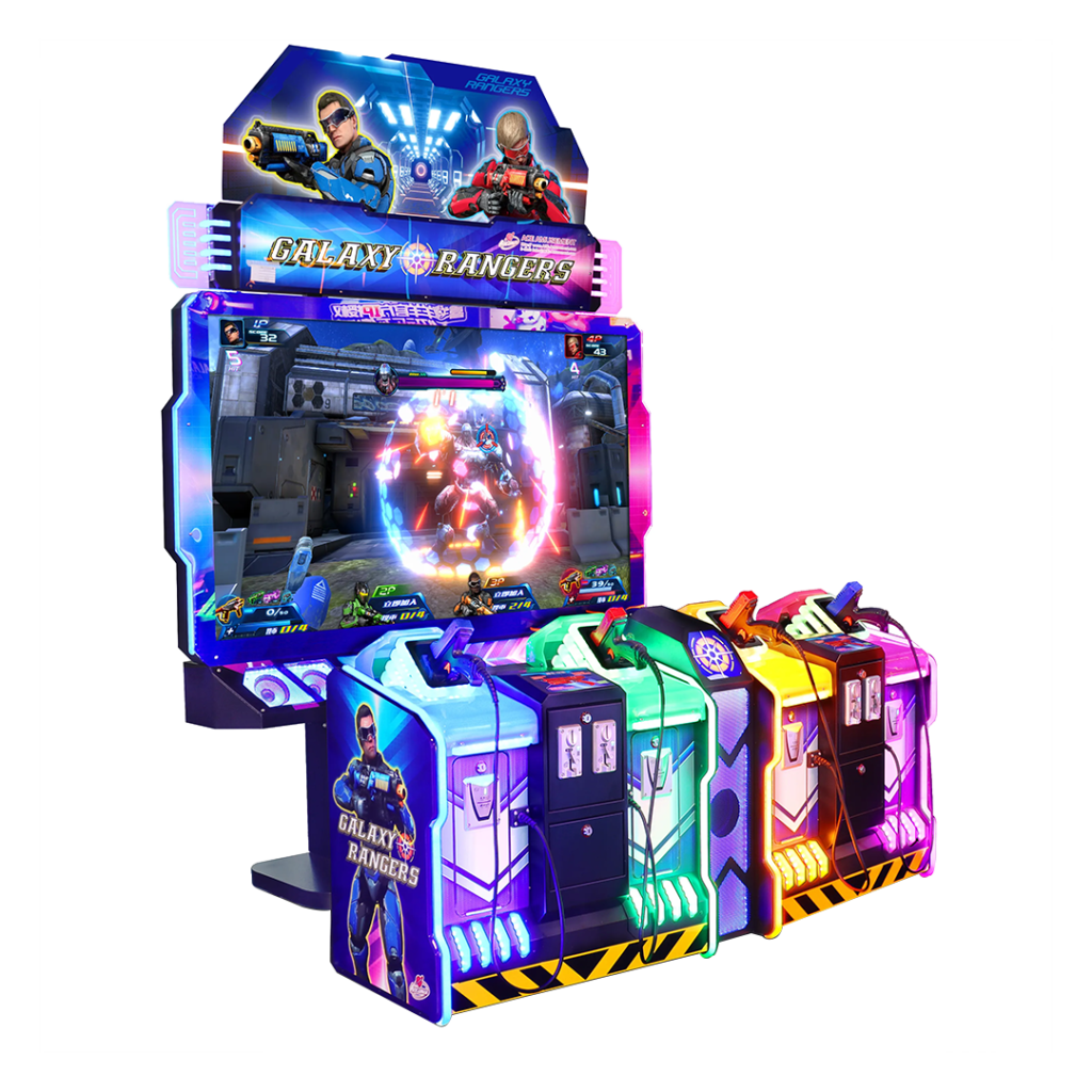 Ce jeu de tir pour 4 joueurs propose 8 scénarios palpitants et trois niveaux de difficultés. Chaque niveau offre des décors, ennemis et boss différents pour un plaisir et un défi sans fin. Avec ses effets lumineux impressionnants et son design colorés, Galaxy Rangers est une borne idéale pour les salles de jeux et centres de loisirs familiaux.