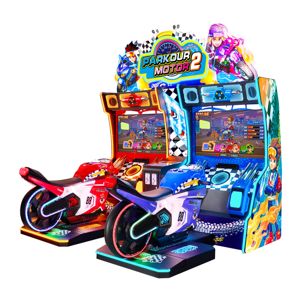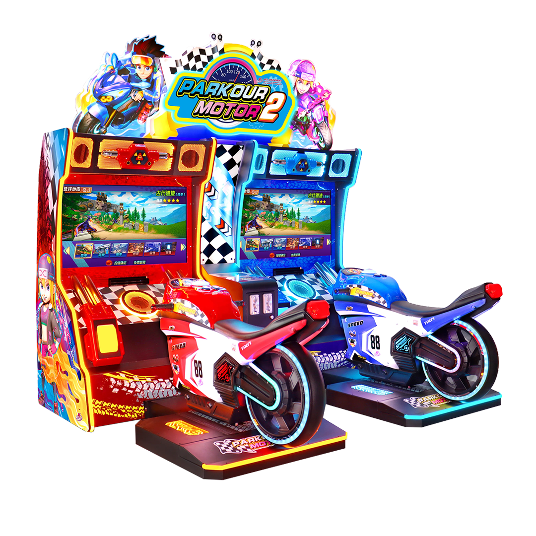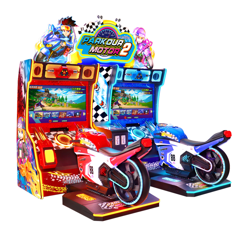 Parkour Motor 2 permet également un mode multijoueur à 2 joueurs, vous permettant d’affronter vos amis. Collectez des bonus pour recevoir des avantages, évitez les obstacles qui vous font ralentir et atteignez la ligne d’arrivée en premier pour remporter la victoire. Cette borne d’arcade est parfaitement adaptée aux salles d’arcade et centres de loisirs à la recherche d’un jeu de course moto attractif et immersif.