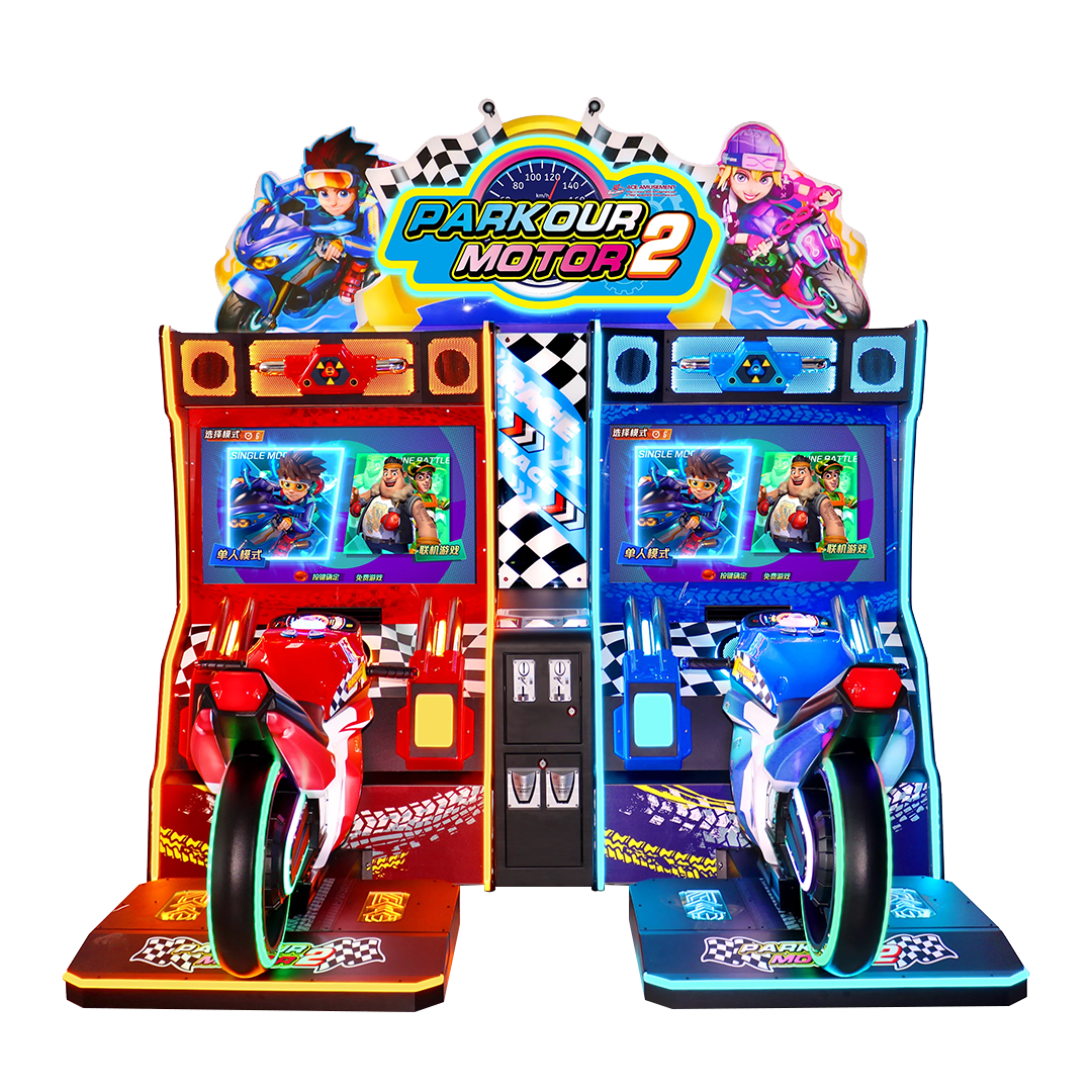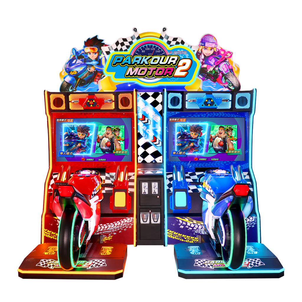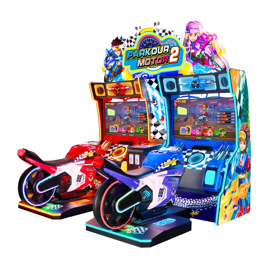Parkour Motor 2 permet également un mode multijoueur à 2 joueurs, vous permettant d’affronter vos amis. Collectez des bonus pour recevoir des avantages, évitez les obstacles qui vous font ralentir et atteignez la ligne d’arrivée en premier pour remporter la victoire. Cette borne d’arcade est parfaitement adaptée aux salles d’arcade et centres de loisirs à la recherche d’un jeu de course moto attractif et immersif.