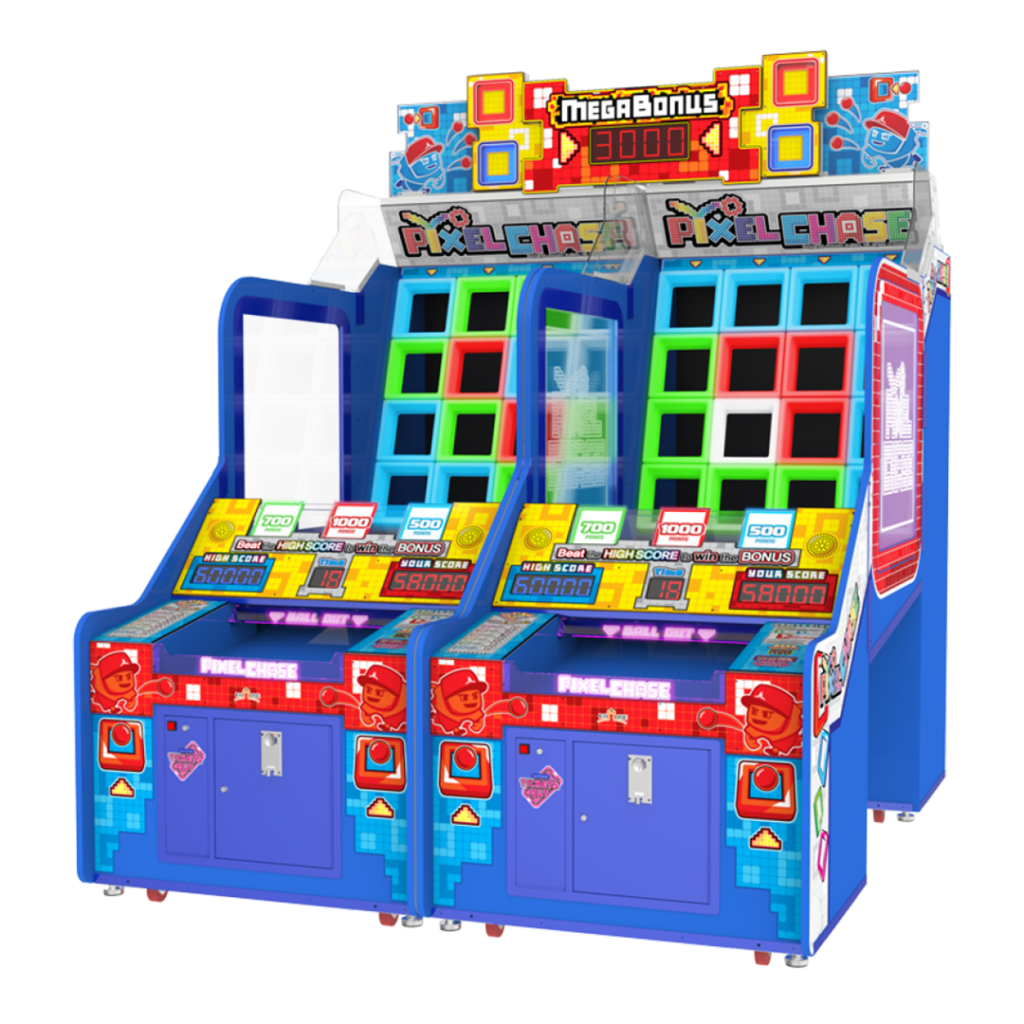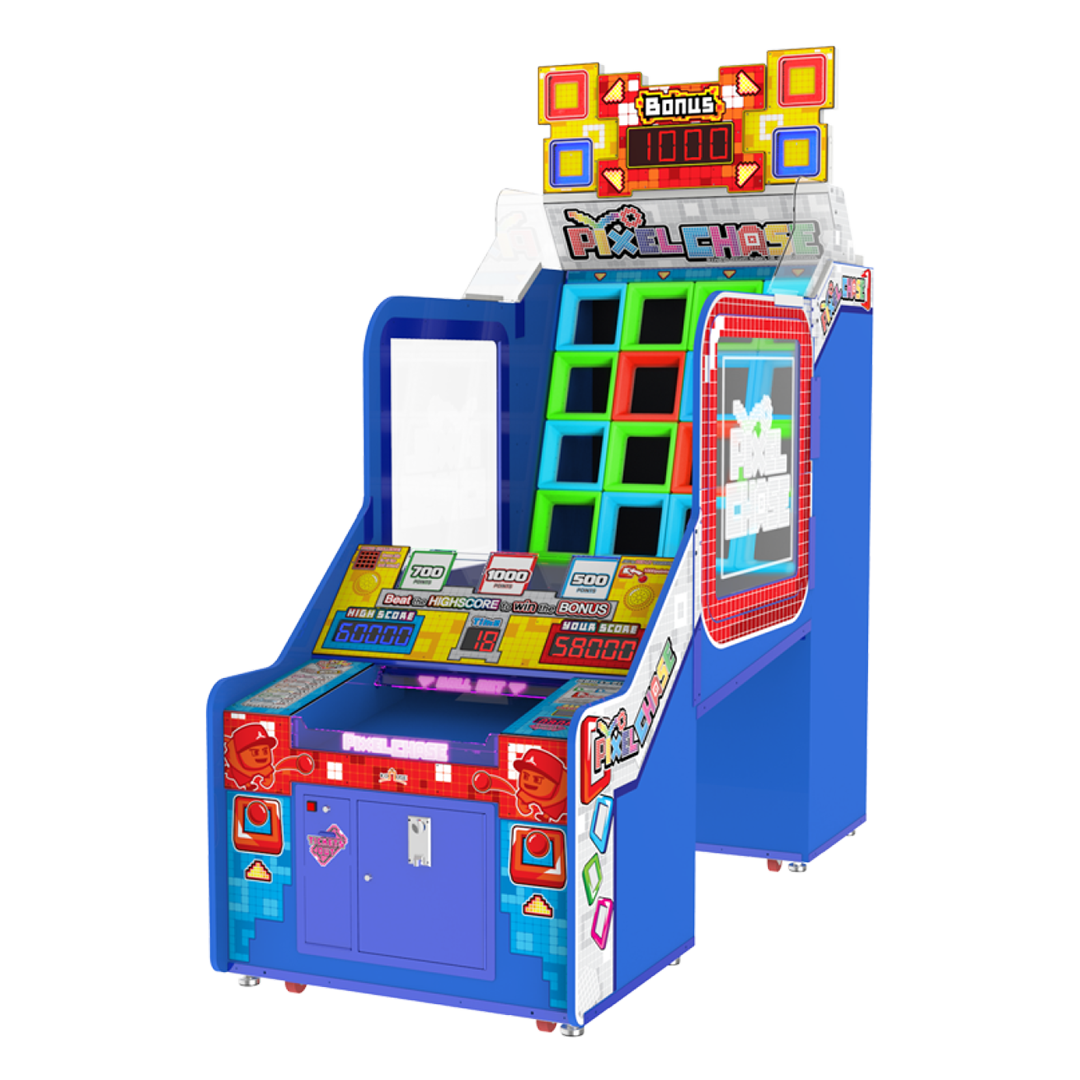 Pixel Chase est un jeu d’adresse conçu pour tester la précision et les réflexes des joueurs. Installé dans une borne au design moderne, sublimée par un éclairage LED éclatant, il attire immédiatement l’attention dans toute salle de jeux ou centre de loisirs.