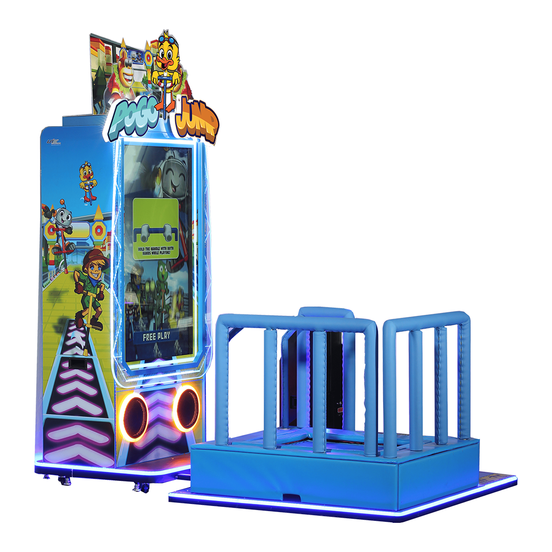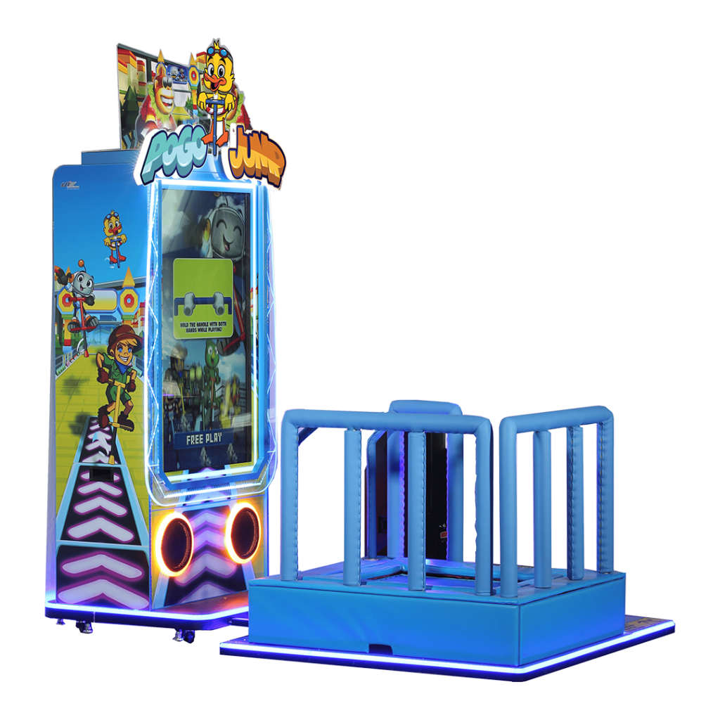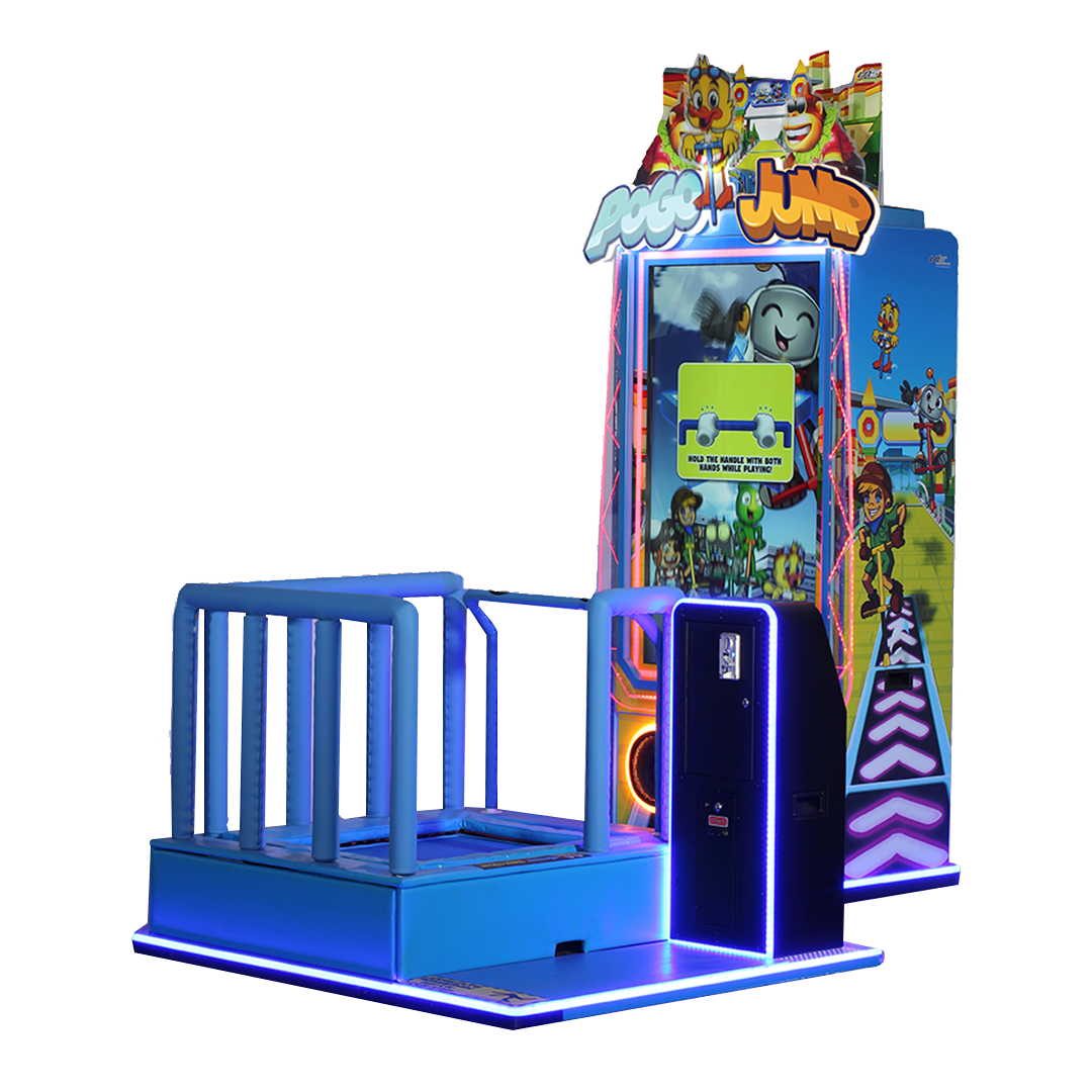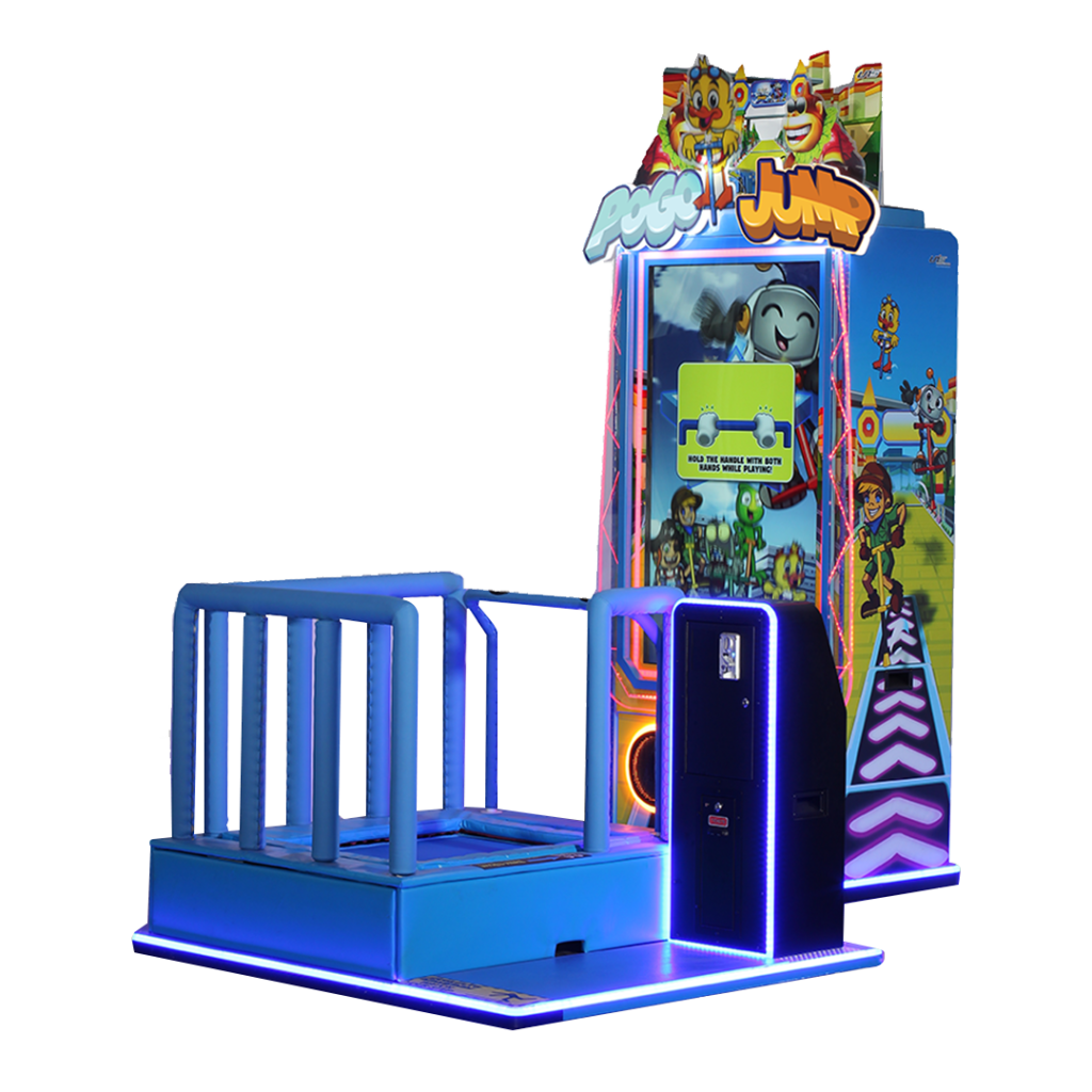 Pogo Jump DLX, c’est la borne d’arcade qui allie parfaitement activité physique et divertissement. Elle propose des courses de pogo sticks vidéo et transforme le mouvement des joueurs en action à l’écran grâce à un concept de course basé sur le rebond.