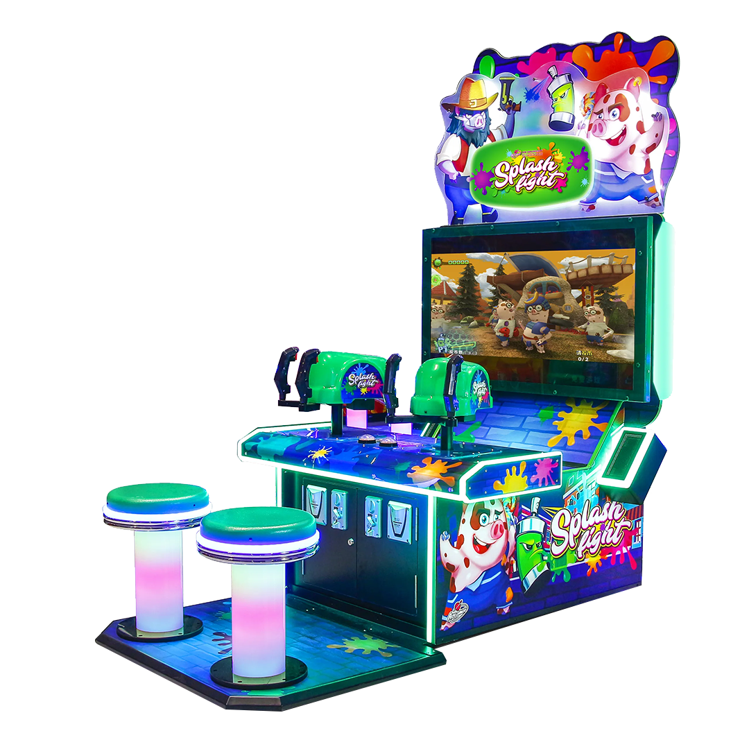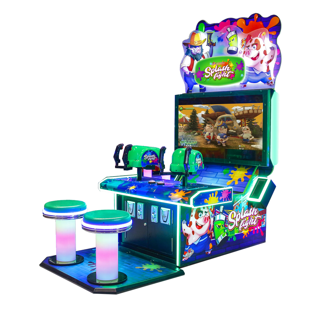 Grâce à ses nombreux LED, à son très bel écran et son topper, Splash Fight est un jeu très attractif qui trouvera sa place dans n’importe quelle salle d’arcade ou centre de loisirs.