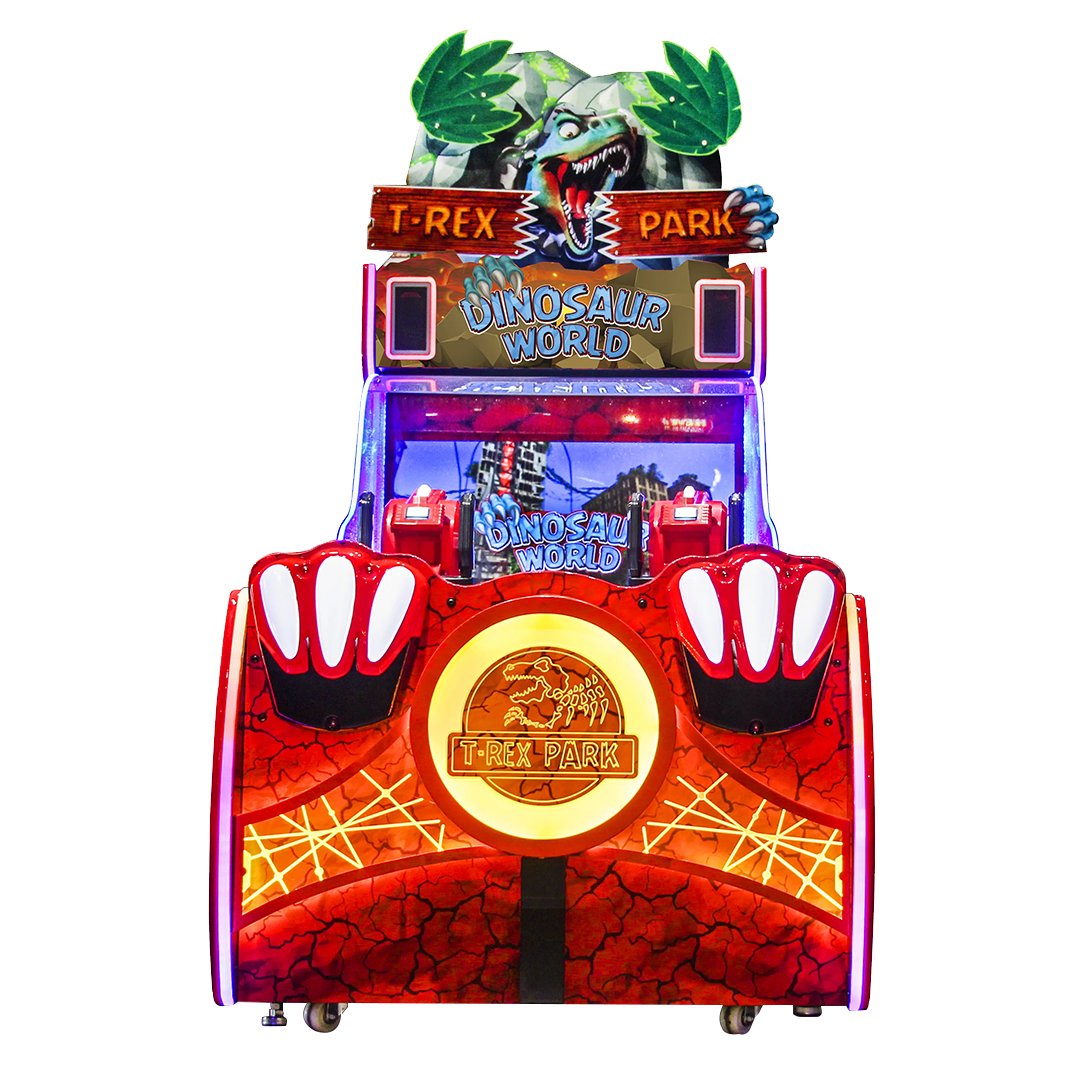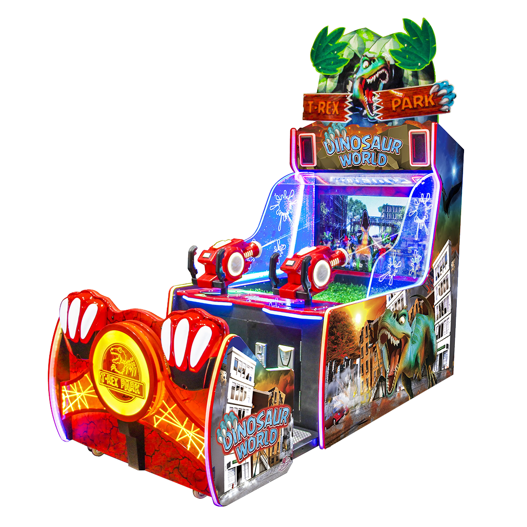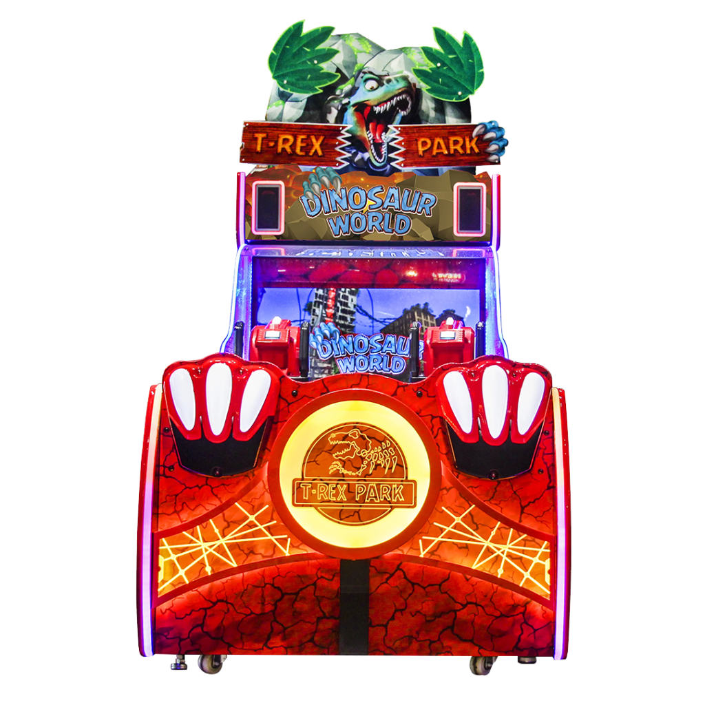 T-Rex Park est un jeu d’arcade à eau pour deux joueurs, qui plonge les participants au cœur de la préhistoire, dans un univers de dinosaures ludique, plein d’action et accessible à tous les âges.