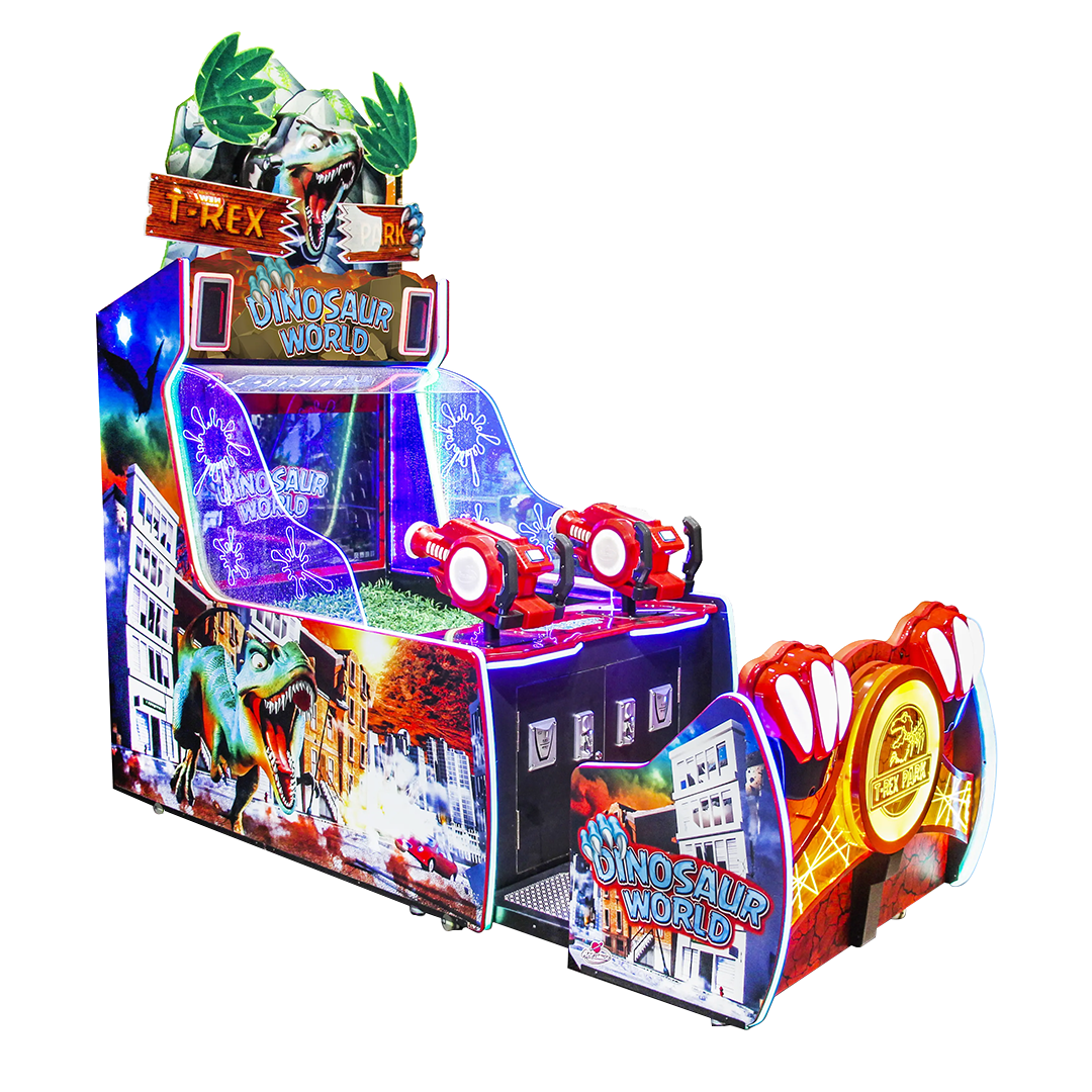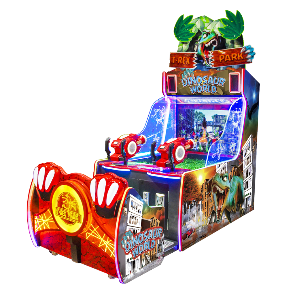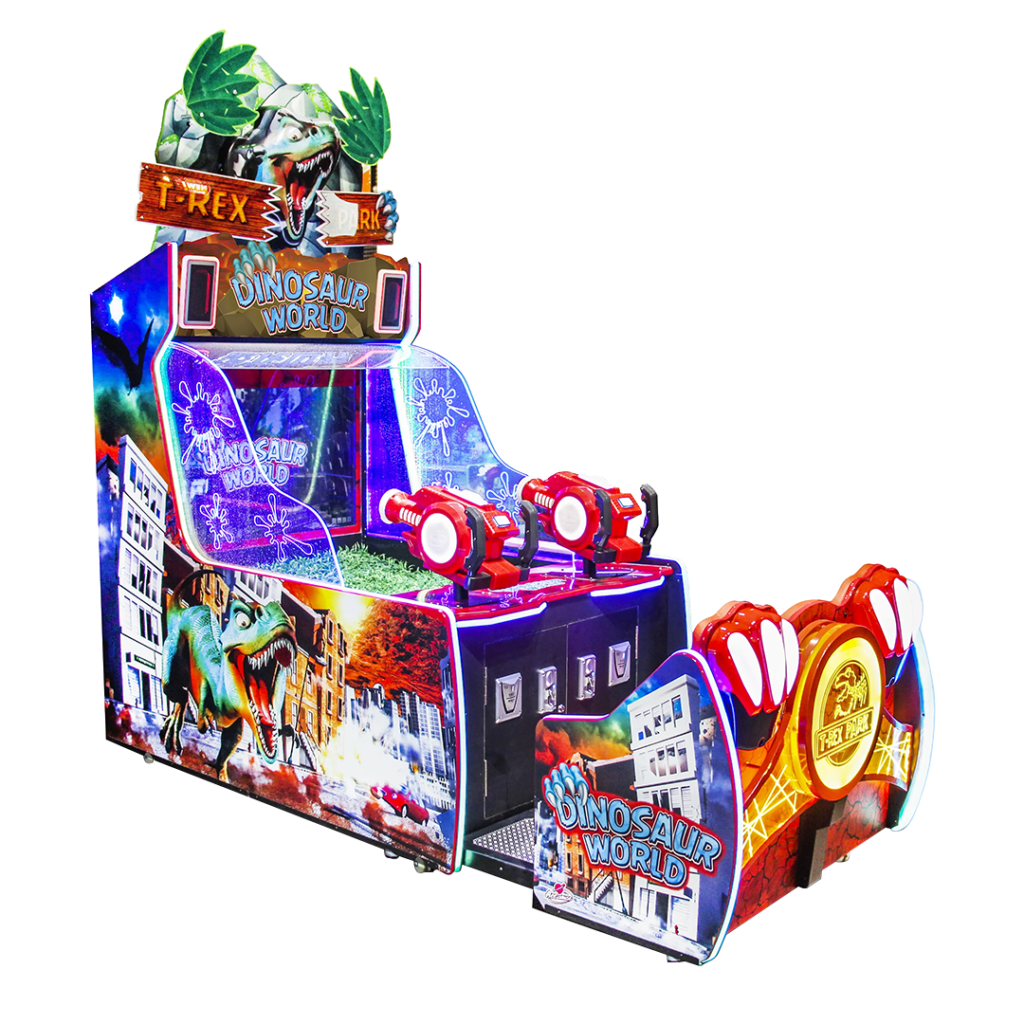 T-Rex Park est un jeu d’arcade à eau pour deux joueurs, qui plonge les participants au cœur de la préhistoire, dans un univers de dinosaures ludique, plein d’action et accessible à tous les âges.